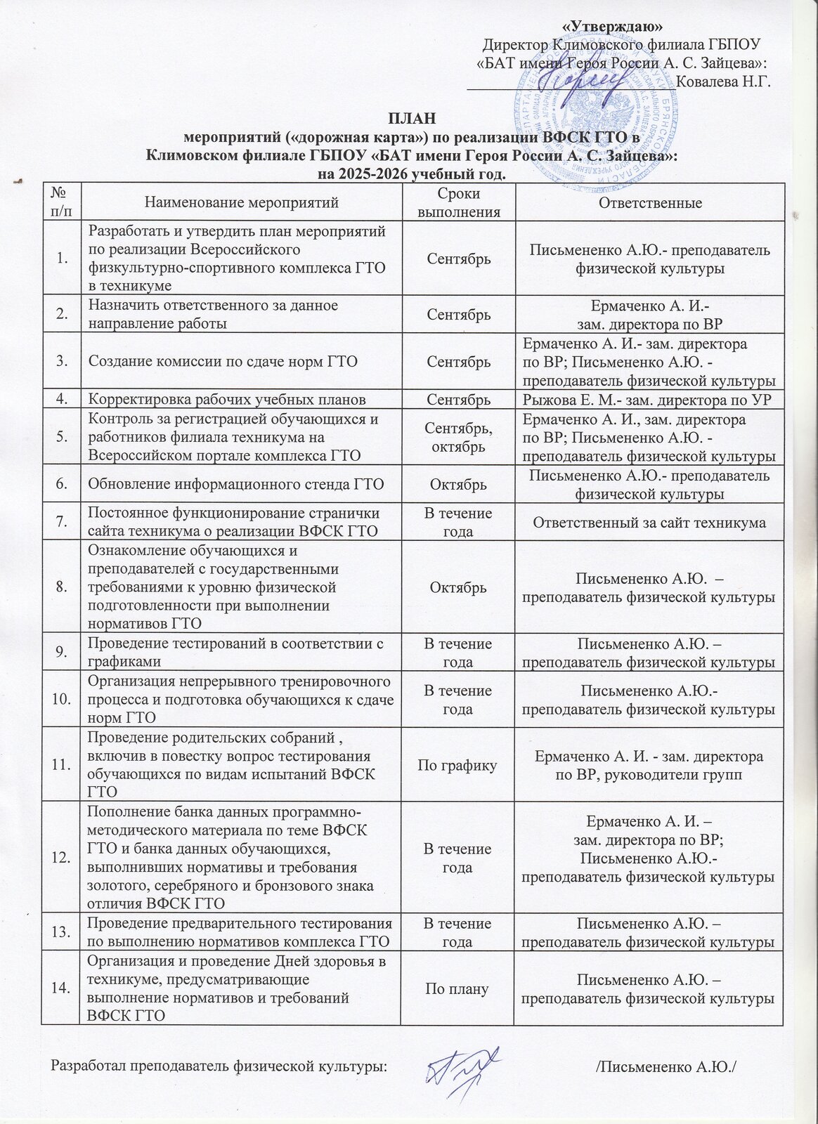 6 июня 2025 г. в Климовском техникуме состоялась торжественная церемония награждения знаками ГТО работников техникума.